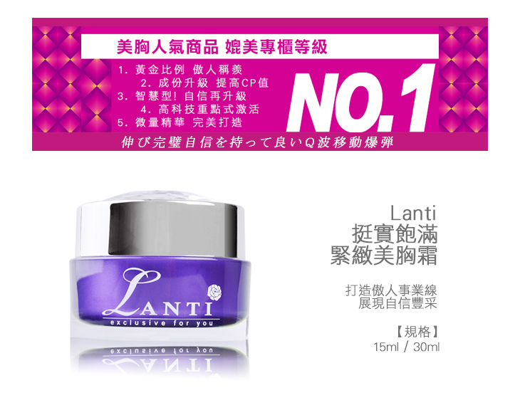 清潔並拭乾肌膚後,取適量「美胸霜」塗抹於胸部肌膚按摩至吸收即可。