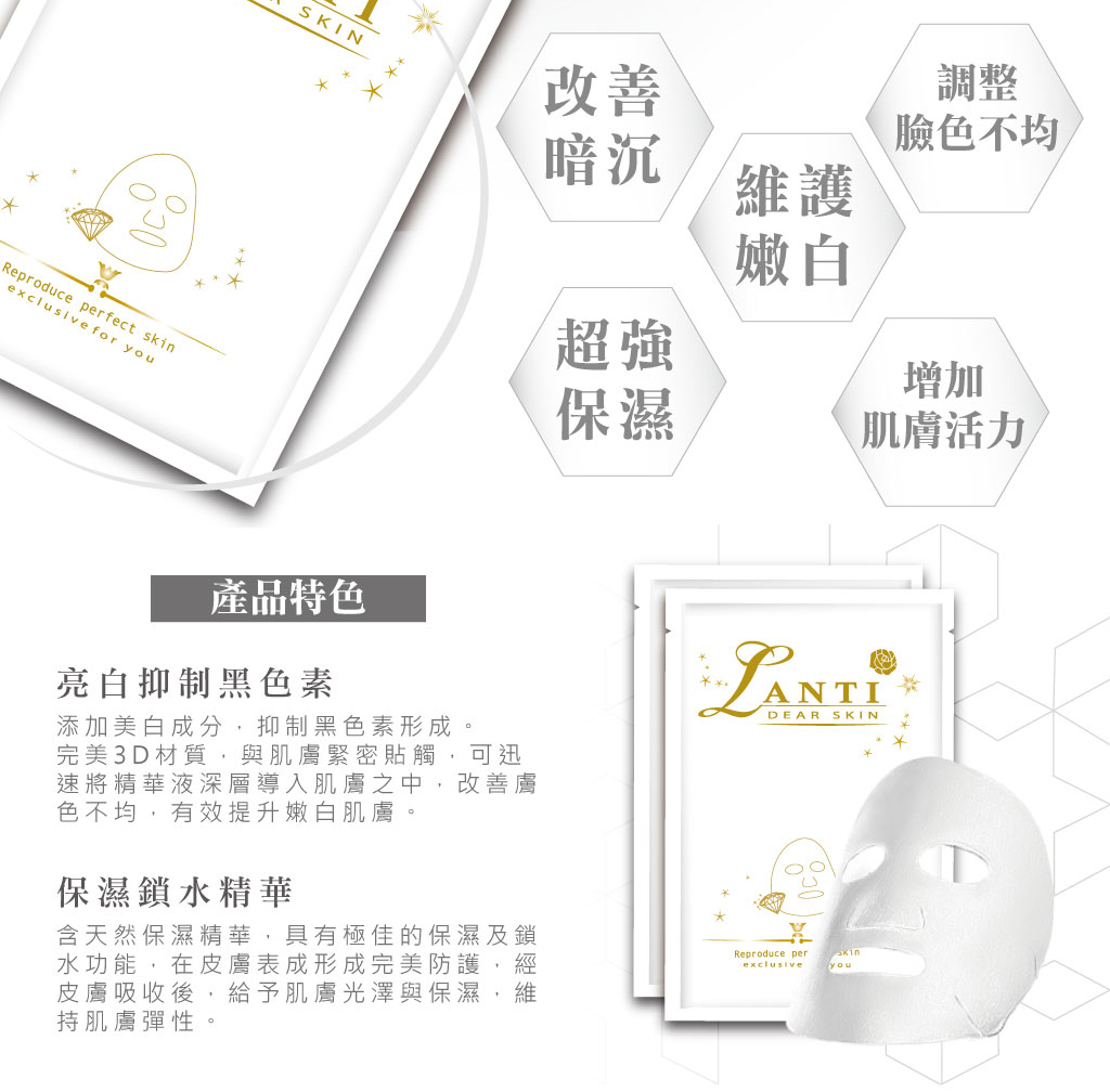 Lanti晶鑽光感新生雪肌蠶絲面膜